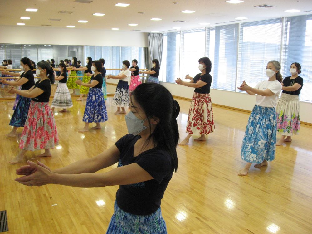 “初めてのフラ”きめ細かいレッスンで基礎を学びます。明るい雰囲気の中、簡単な曲を覚えフラの楽しさを体感しましょう。